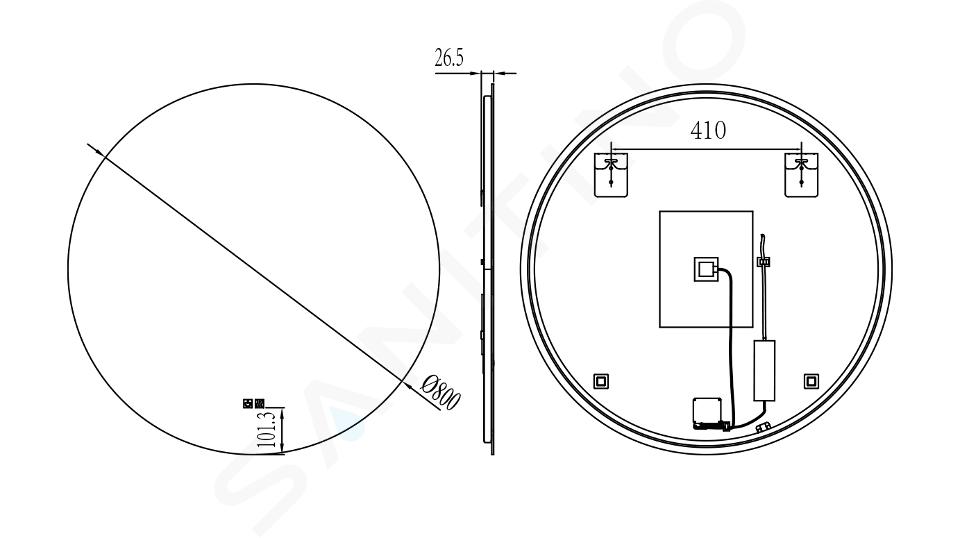 kielle Idolio - Oglindă cu iluminare LED și încălzire, diametru 80 cm