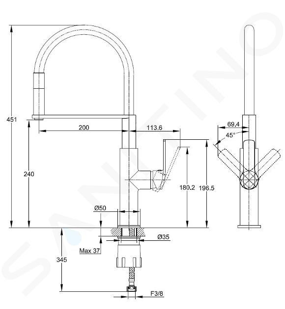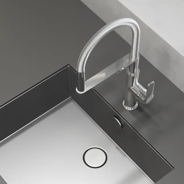Maneta de control utilizează un cartuș ceramic. Acesta este responsabil pentru reglarea sensibilă a intensității și temperaturii jetului. Perlatorul Neoperl Cascade SLC este, de asemenea, un avantaj al bateriei de bucătărie, care te va ajuta să lupți împotriva calcarului. Perlatorul elimină pur și simplu calcarul prin frecarea ușoară a ochiurilor de plasă cu degetele. Pentru ca instalarea bateriei să fie rapidă și ușoară, sunt incluse și furtunurile de conectare flexibile.