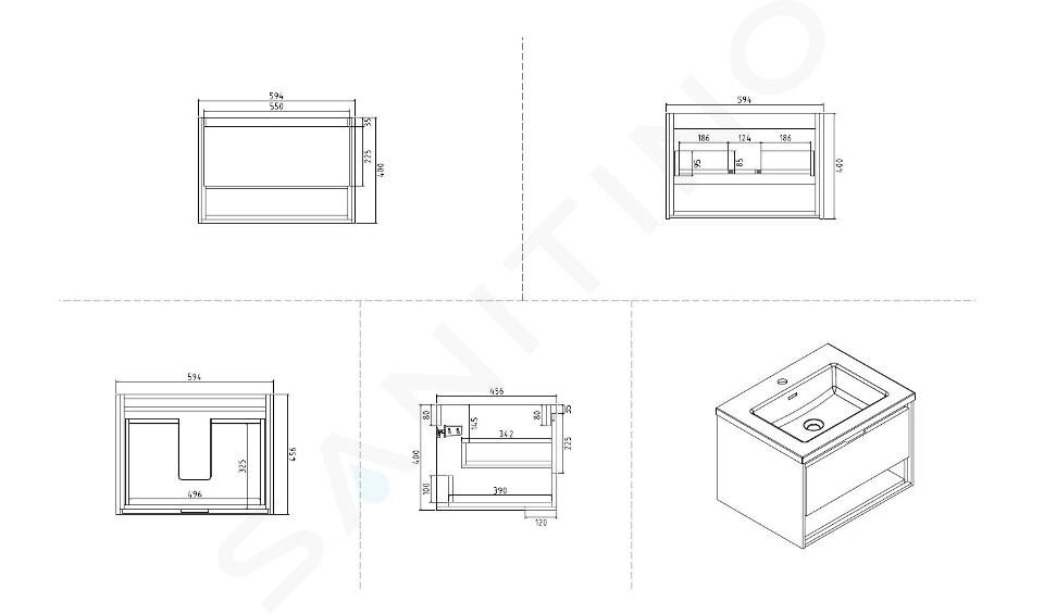 Lavoarul inclus la dulapul de bază este realizat din marmură turnată, cu proprietăți remarcabile: rezistent la impact mecanic și chimic, cu culoare stabilă și suprafață netedă. Liniile precise care urmează forma mobilierului sunt obținute prin tehnologia de turnare în matrițe. Lavoarul din marmură turnată impresionează și prin aspect, utilizând efectul muchiilor drepte.