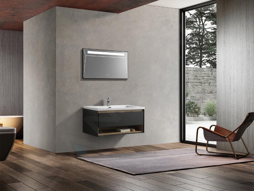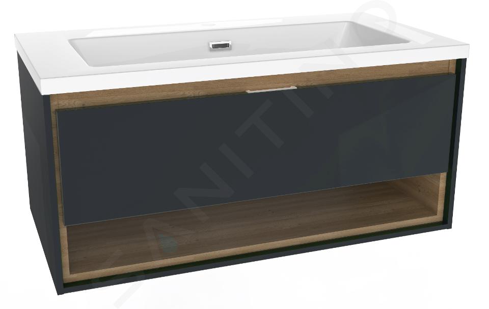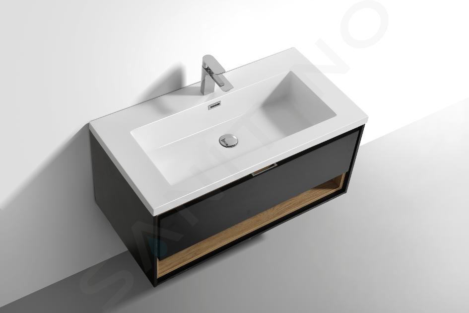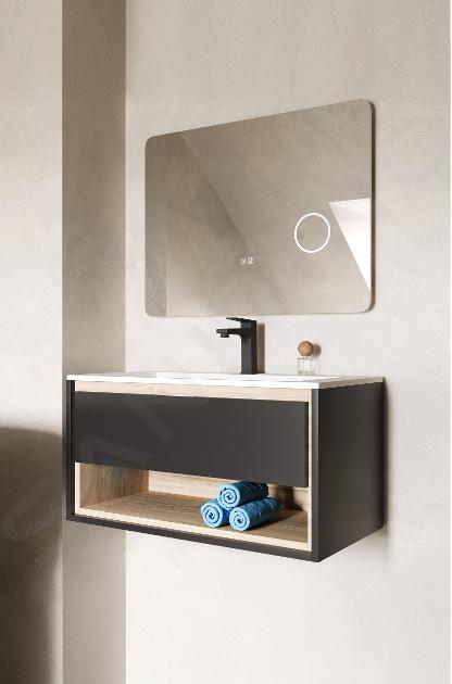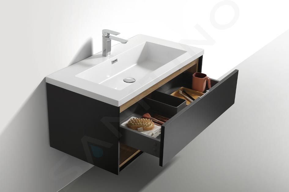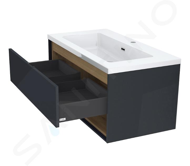 kielle Meara - Dulap cu lavoar 90 cm, gri închis lucios/stejar deschis
