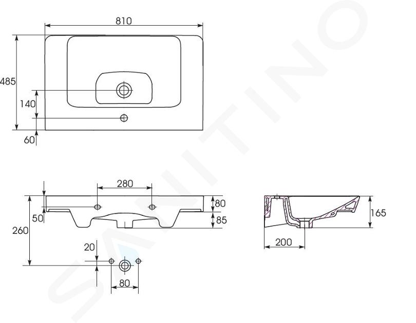 kielle Minor - Lavoar 81x48 cm, cu preaplin, cu orificiu pentru baterie, alb