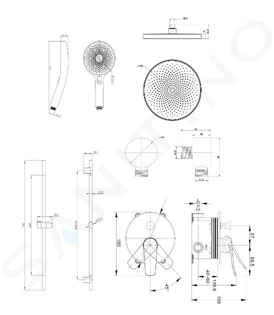 - diametru duș 260 mm