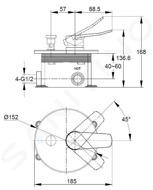 kielle Nefia - Baterie încastrată, pentru 2 consumatori, cu corp montare, negru mat
