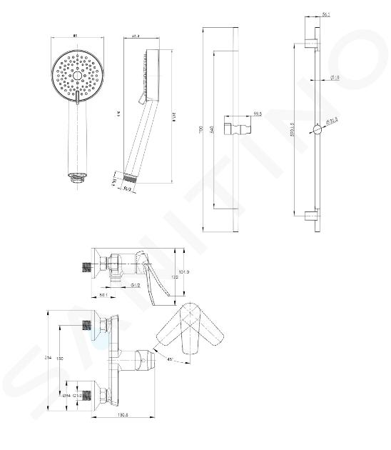baterie de duș cu montare pe perete