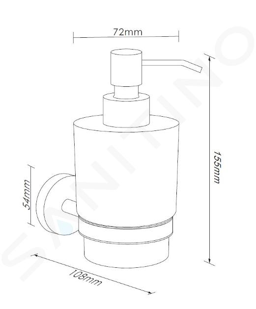 Acest dozator de săpun lichid funcționează cu o combinație plăcută de sticlă mată și suprafețe cromate lucioase. Mânerul propriu-zis este fabricat din alamă, în timp ce pompa de distribuire este realizată din plastic de înaltă calitate. Ambele elemente primesc apoi un finisaj cromat. Datorită liniilor sale rotunjite, dozatorul de săpun se potrivește perfect în interioarele clasice.