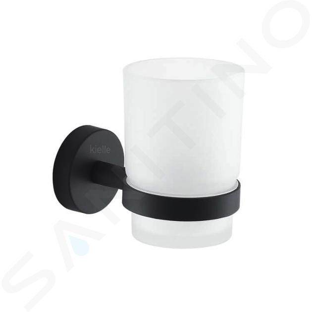 kielle Oudee - Pahar pentru periuțe și pastă de dinți cu suport, sticlă mată/negru mat