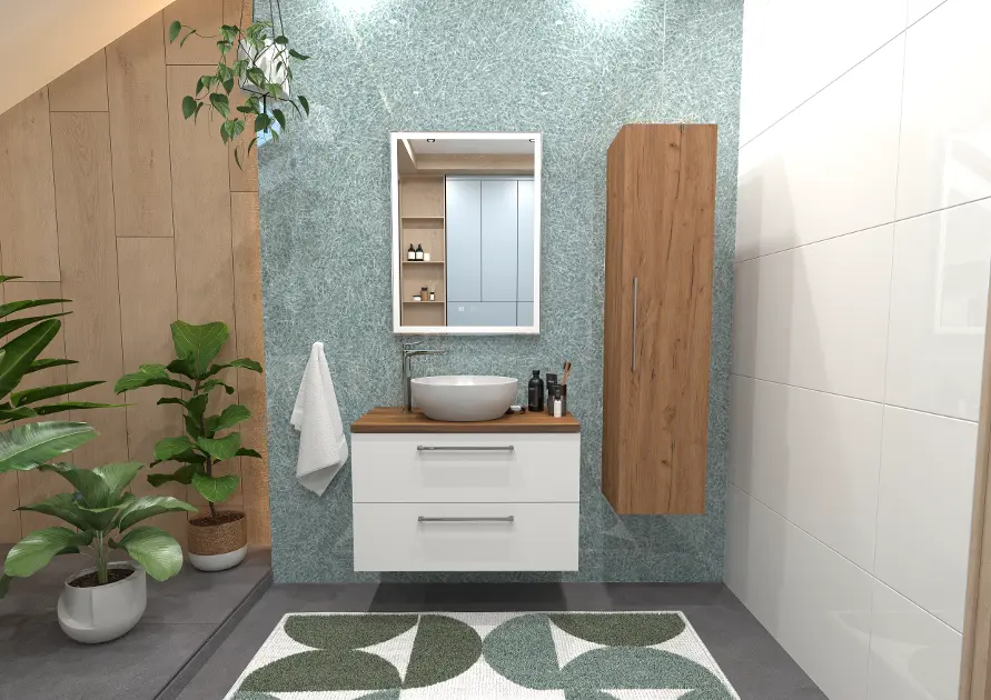 kielle Vega - Dulap bază cu blat inclus, pentru lavoar 80x50x46 cm, alb lucios/stejar auriu