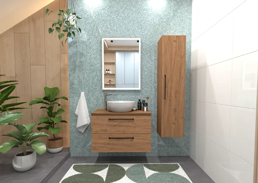 kielle Vega - Dulap bază cu blat inclus, pentru lavoar 80x50x46 cm, stejar auriu