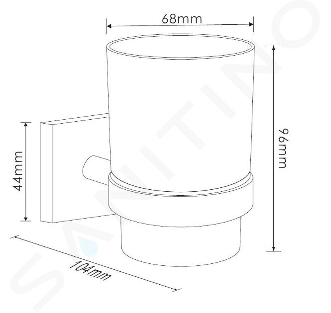 Úchyt pohára je vyrobený z mosadze a vybavený povrchovou úpravou chróm. Inštaluje sa na stenu buď privŕtaním alebo prilepením (lepidlo nie je súčasťou dodávky). Vďaka skrytému upevneniu zostáva celkový vzhľad ničím nerušený. Výhodou nástennej inštalácie je významná úspora miesta v okolí umývadla a jednoduchšie udržanie poriadku.