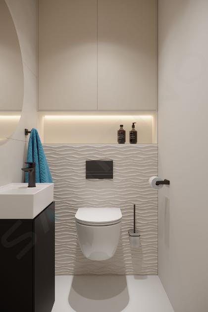 Závesná skrinka s umývadielkom - nadčasová biela s čiernou
