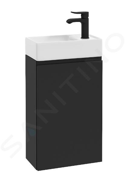 Kúpeľňová skrinka kombinuje rôzne materiály, zatiaľ čo predná strana je vyrobená z kvalitného MDF, bočné steny sú z drevotriesky. Celá skrinka je lakovaná matným čiernym lakom a obstaraná špeciálnou povrchovou úpravou, ktorá zamedzuje zanechávanie otlačkov prstov. Údržba je teda rýchla, efektívna a skrinka zostáva dlhodobo krásna.