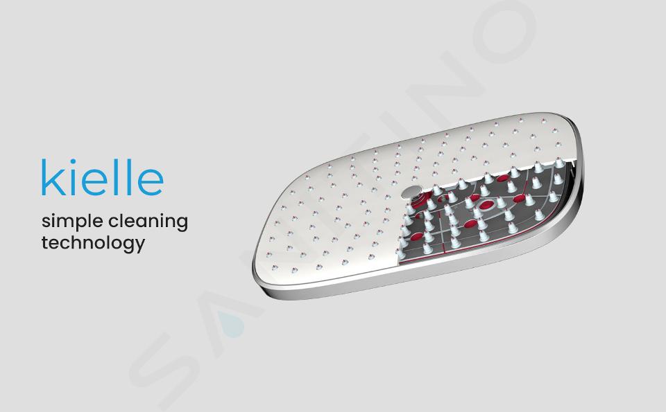 Kielle Vega sa môže pochváliť inovatívnymi samočistiacimi dýzami, ktoré vás zbavia nečistôt i vodného kameňa pri každom použití. Na rozdiel od iných spŕch nemusíte výstupky čistiť handričkou ani prstami, sprchová hlavica kielle Vega sa o to postará. Samočistiace ihličky sa vysunú cez otvory pri vypnutí tlaku vody, čím dôjde k vyčisteniu dýz bez vašej pomoci. Vy si tak môžete vychutnať dokonalý sprchový prúd dlhé roky.