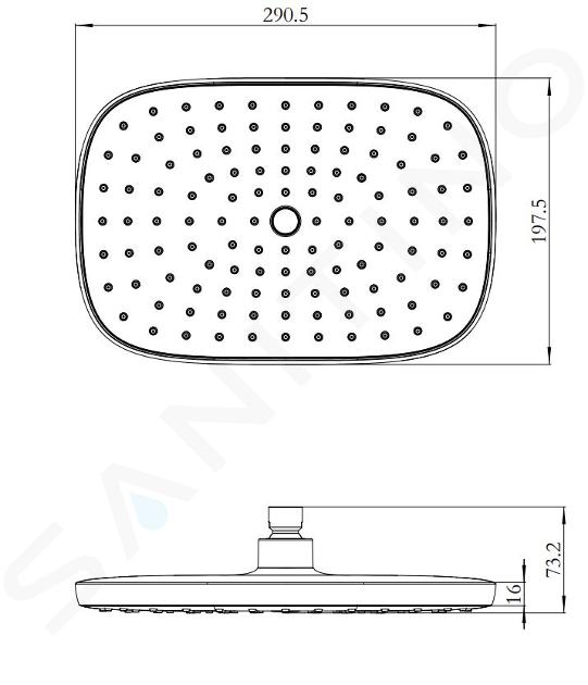 Horná sprcha sa inštaluje na sprchové rameno, ktoré je nutné doobjednať zvlášť – nie je súčasťou dodávky.