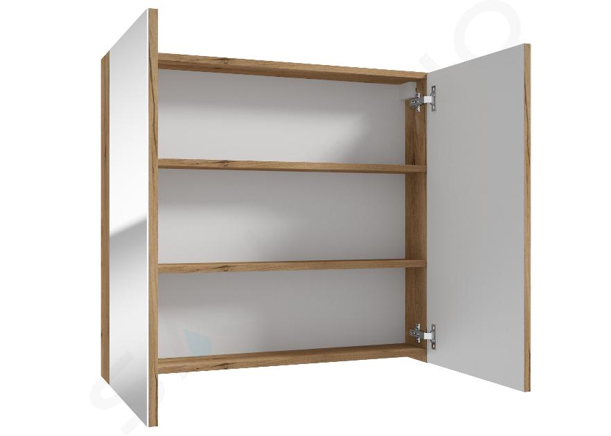 Zrkadlová skrinka kielle Vega splní aj tie najnáročnejšie predstavy. Vďaka svojim rozmerom 800x730x150 mm a dvom zabudovaným policiam ponúka dostatok úložného priestoru na všetko čo denne potrebujete k svojej hygiene. Ľahko tu svoje toaletné potreby zorganizujete a budete ich mať vždy poruke. Skrinka je vyrobená z kvalitnej drevotriesky a vybavená povrchom s dekorom zlatého duba. Ak chcete dotiahnuť svoju kúpeľňu naozaj do dokonalosti, stavte aj na ďalšie prvky v tomto dekore.